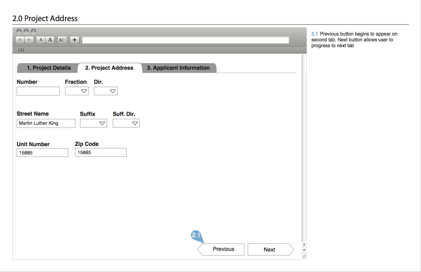 Previous and next buttons helped navigate through the tabs.